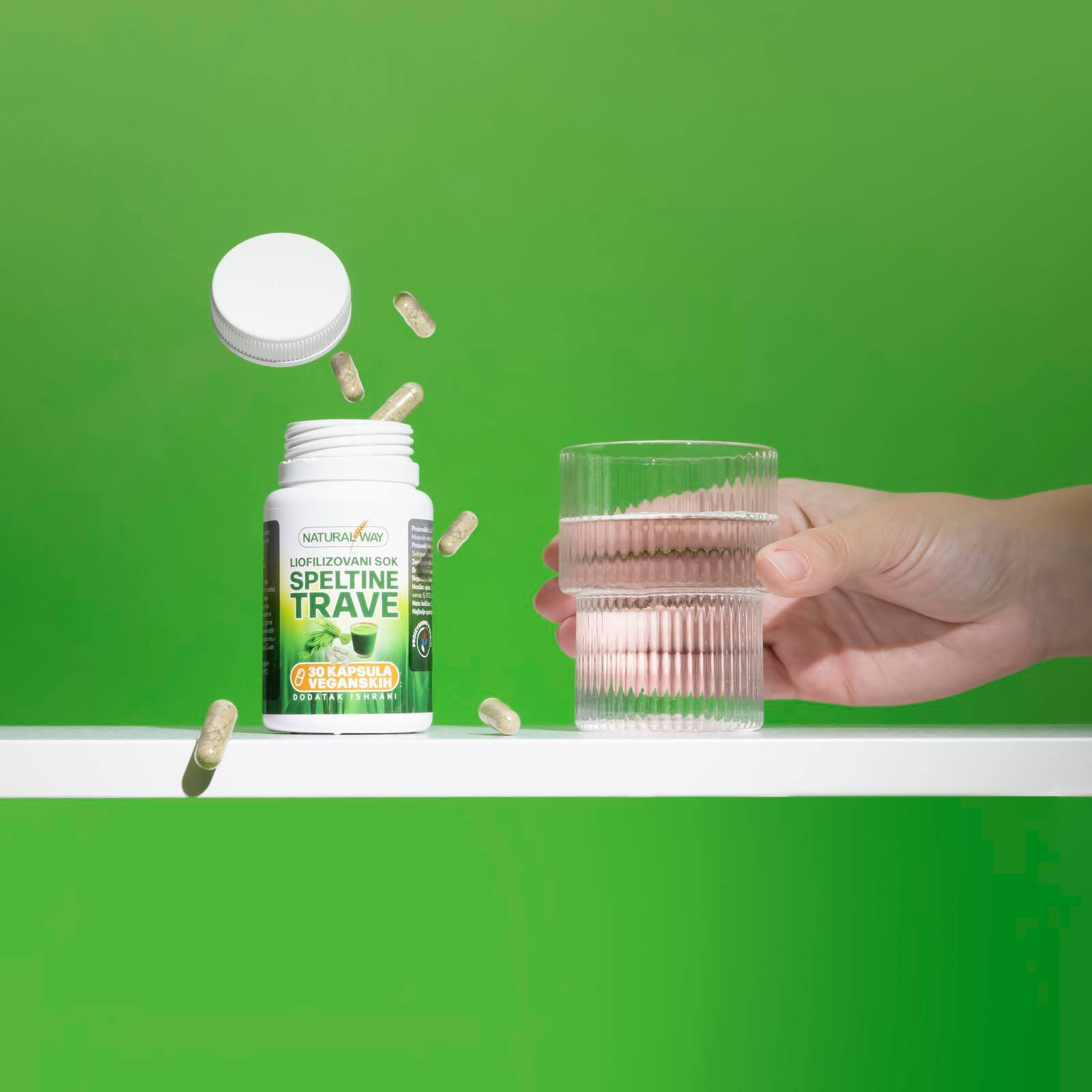 Kapsule vam omogućavaju da unesete sve hranljive sastojke kao kada biste popili sveži sok od speltine trave. Ovaj dodatak ishrani je napravljen liofilizacijom zaleđenog soka spelte što znači da se pretvaranjem u prah ne gube njegove blagodeti, samo se odstranjuje voda. Mogu piti deca iznad 3 godine.